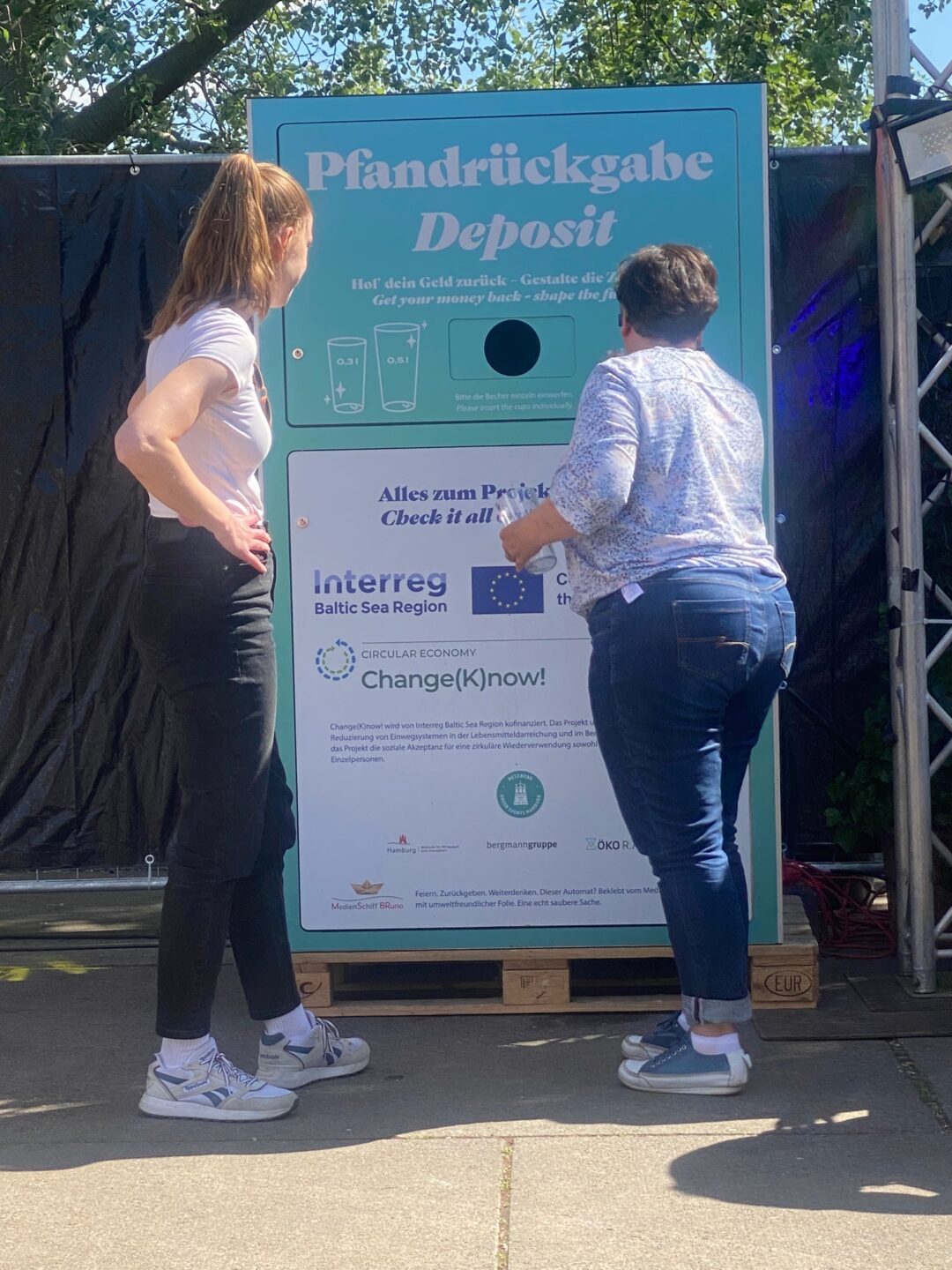Im Rahmen eines Pilotprojekts des Interreg-Programms Change(K)now! wurde auf dem HAMBURGER HAFENGEBURTSTAG 2025 ein Mehrweg- Rücknahmeautomat für Becher getestet. Das Gerät war auf einer Teilfläche installiert, die von der BergmannGruppe bespielt wurde und sollte die Rücknahme von Bechern vereinfachen und das Personal entlasten. Darüber hinaus sollte getestet werden, ob eine Skalierung der Maßnahme bei Folgeveranstaltungen auf weitere Veranstaltungsflächen und auf Speisen zu empfehlen ist.