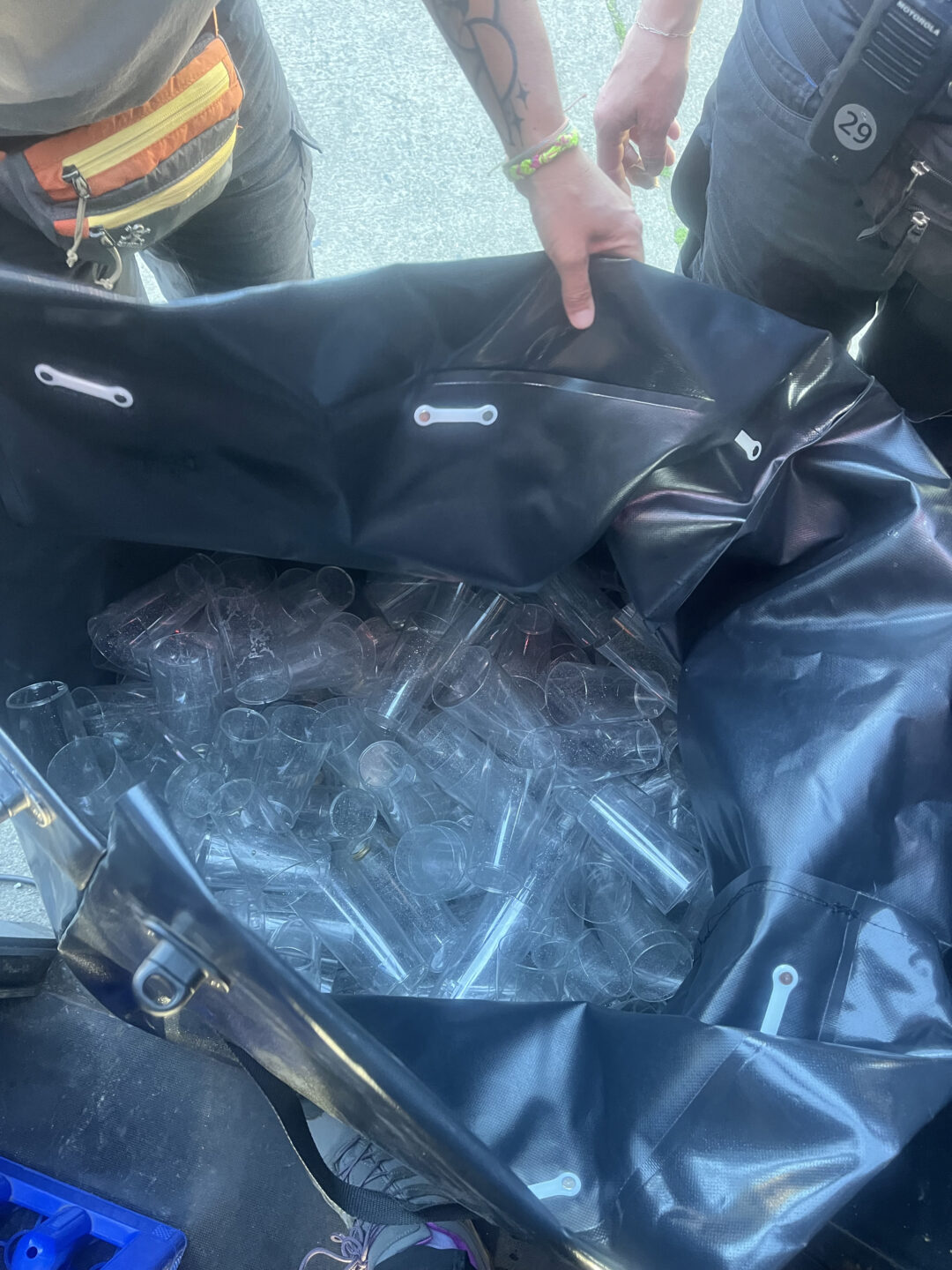 Ein Sack voller Mehrwegbecher – aus dem Inneren des Rücknahmeautomaten c_Nina Laible